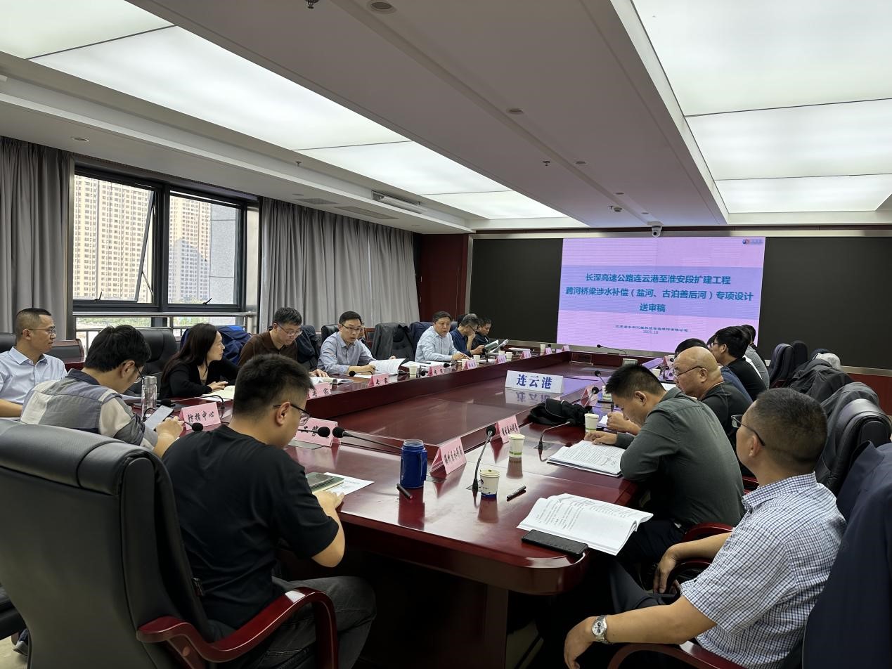 2023年10月14日,我公司編制的《長深高速公路連云港至淮安段擴(kuò)建工程跨通榆河(鹽河段)、古泊善后河消除和減輕影響措施專項(xiàng)設(shè)計(jì)》(以下簡稱《專項(xiàng)設(shè)計(jì)》)順利通過連云港市水利局主持召開的專家審查會(huì),參加會(huì)議的有:連云港市交通運(yùn)輸局、自然資源和規(guī)劃局,市水政監(jiān)察支隊(duì)、市水旱災(zāi)害防御調(diào)度指揮中心,灌云縣水利局、海州區(qū)水利局,建設(shè)單位省交通工程建設(shè)局、主體工程設(shè)計(jì)單位中交第二公路勘察設(shè)計(jì)研究院有限公司等單位代表及特邀專家。