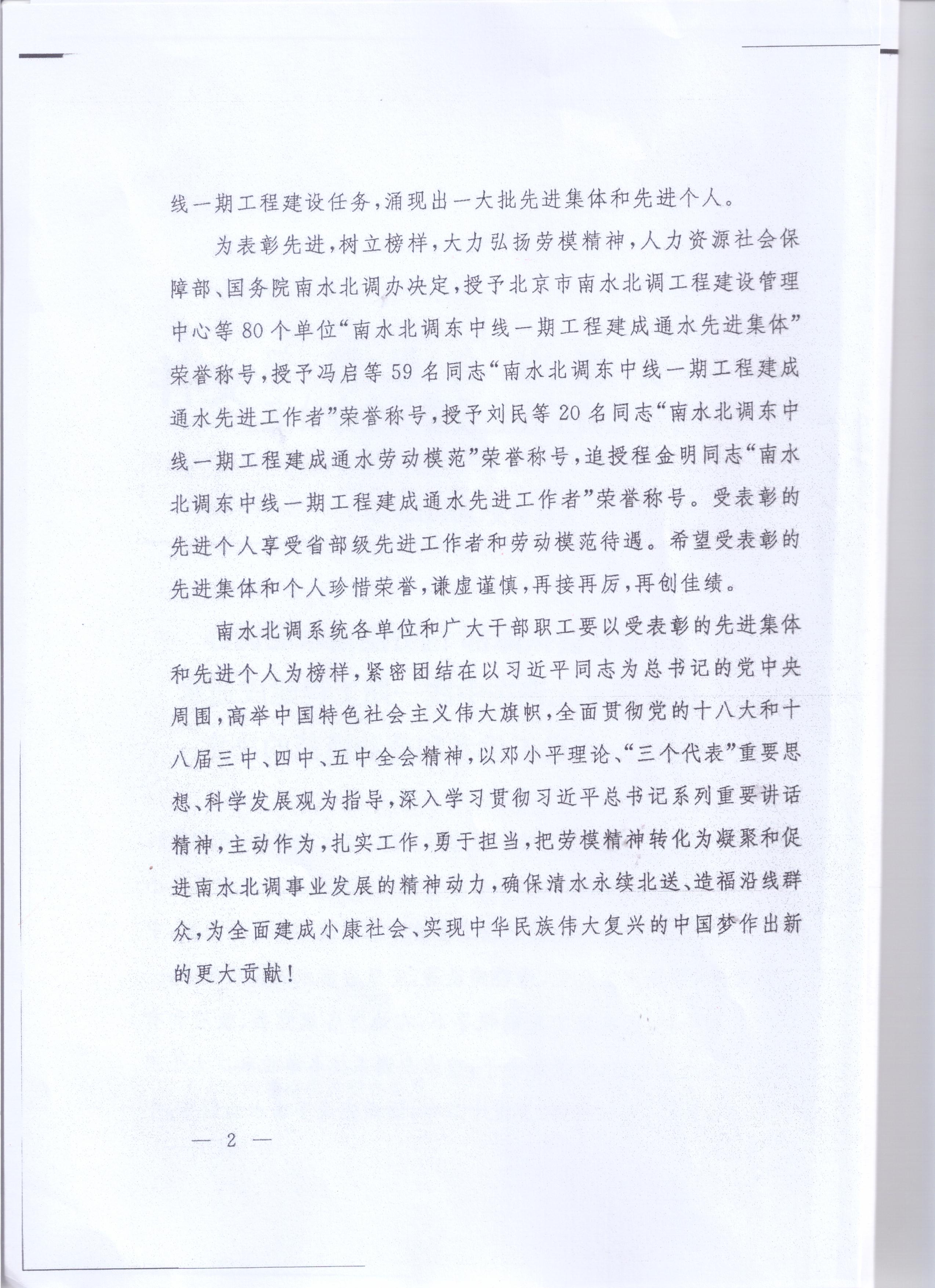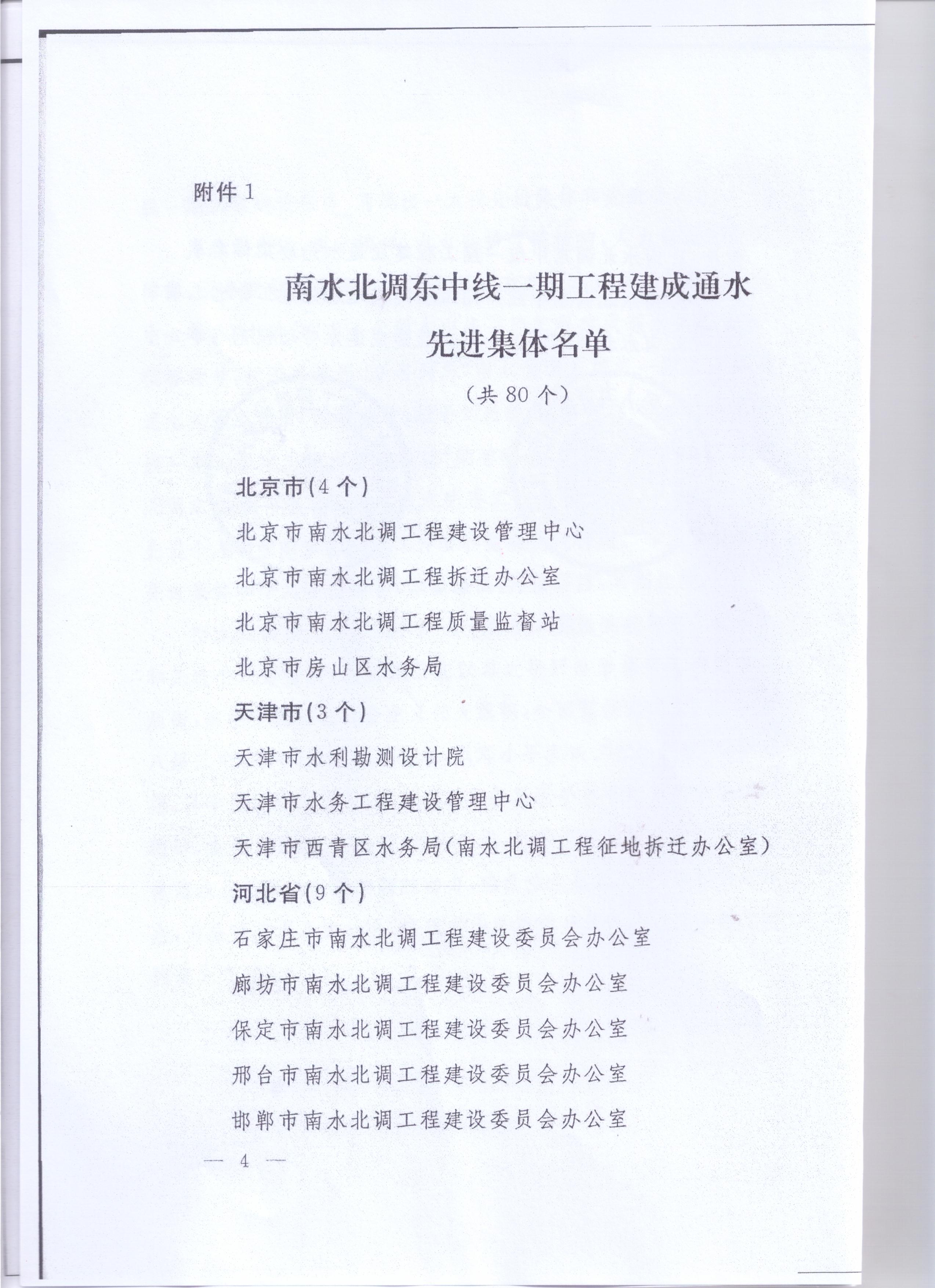 > 南水北調東中線一期工程先進集體