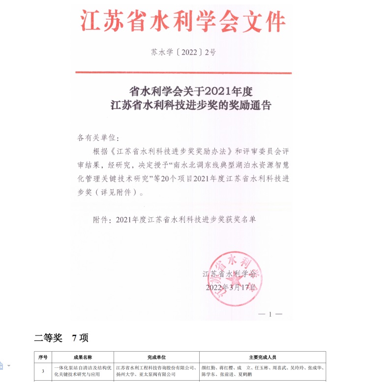 | 公司喜獲2021年江蘇省水利科技進步獎二等獎作者:admin 來源: 日期:2022-3-21 16:32:46 人氣: